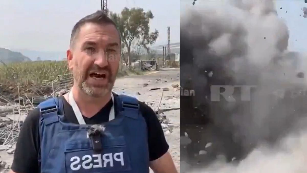 Amid tensions in West Asia, journalists are reporting from the ground, risking their lives to bring citizens the reality of the situation. A terrifying video has surfaced on social media where a missile hit just behind a reporter while he was reporting.