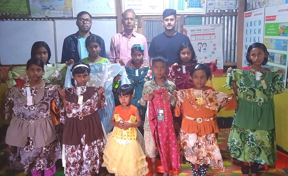 একই এলাকার বাসিন্দা ফেরিওয়ালা নজরুল ইসলামের মেয়ে নাসিমা আখতার (১১) নতুন জামা পেয়ে বারবার গায়ে ফিট করে দেখছিল। এ সময় আনন্দে তার চোখ ঝিলিক দিচ্ছিল যেন। নাসিমা আখতার একই বিদ্যালয়ের তৃতীয় শ্রেণির ছাত্রী।